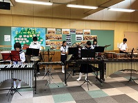 1学期最後の給食は、今が旬の夏野菜をたっぷり使った献立で、5種類の夏野菜が使われていました。カレーに入った「かぼちゃ」「いんげん」「トマト」「パプリカ」、サラダに入った「きゅうり」。夏野菜には、夏に欠かせないビタミンやミネラル、水分が多く含まれているので、体を冷やし、むくみを取ってくれるそうです。カレーおいしかったですね。また、最後のごほうびで「シューアイス」が出て、子ども達は大喜びでした。