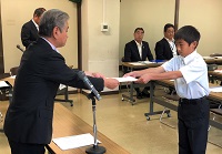 6月13日(水)午後6時より、町多目的研修施設において、第26回サマーキャンプ中学生の翼の任命式が行われました。小野中学校第2学年の14名の生徒一人一人に、西牧教育長より任命状が授与されました。西牧教育長から、次のことが話されました。
