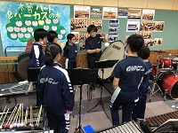 支部大会」に向けて一生懸命に練習に取り組んでいます。演奏技能の向上のために、6月中に8回(8楽器)、外部講師の先生による指導が計画されています。1回目、6月7日(木)はフルートの渡辺先生。9日(土)はトランペットの蒲倉先生とオーボエの加藤先生。10日(日)はホルンの大野先生。12日(火)は打楽器の小林先生。15日(金)はクラリネットの伊藤先生。16日(土)はチューバ・ユーフォニアムの牧先生。8回目、23日(土)はサックスの正林先生。写真は打楽器の小林先生からの指導の様子です。子ども達は真剣な顔で練習に取り組んでいました。吹奏楽部、頑張れ!応援しています。