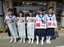 この運動は、子どもたちが生活リズムを改善し、朝食摂取を基本とした望ましい食習慣を身に付けることができるようにしていこうとするものです。本校でも、今朝7時40分から、保健委員が呼びかけ運動を行っていました。呼びかけ運動は金曜日まで続きます。また、木曜日のお昼の放送で、栄養教諭の松本先生からもお話があります。毎朝しっかり朝食をとって、暑い一日を乗り切りましょう。