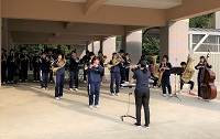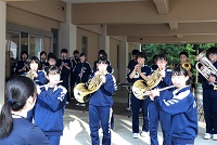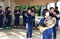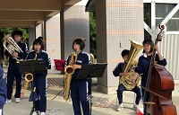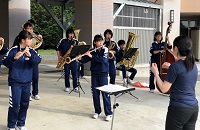 5月29日(火)、中体連総合大会前日です。雷により外での練習ができずにいましたが、雷雲が去り外での練習を開始した午後4時45分、吹奏楽部が運動部生徒を激励しようと、体育館渡り廊下で演奏を行いました。運動部の生徒には「頑張れ!」の演奏が届いたと思います。「チーム小野」で応援しています。吹奏楽部の皆さん、すてきな演奏をありがとう!