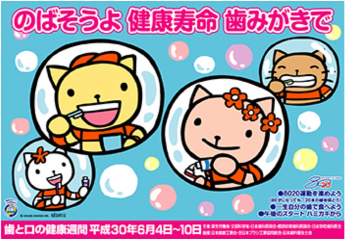 6月4日は何の日かわかりますか?1928年から1938年まで日本歯科医師会が、「6(む)4(し)」にちなんで6月4日に「虫歯予防デー」を実施していました。今では、6月4日から10日まで、「歯と口の健康週間」が実施されています。歯と口の健康に関する正しい知識を国民に対して普及啓発するとともに、歯科疾患の予防に関する適切な習慣の定着を図り、併せてその早期発見及び早期治療等を徹底することにより歯の寿命を延ばし、もって国民の健康の保持増進に寄与することが目的です。