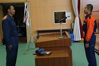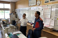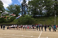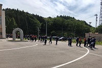 5月21日(月)6校時、第1回避難訓練と少年消防クラブ結団式が行われました。避難訓練は、調理室より出火したとの想定で、子ども達は「お・か・し・も」(おさない・かけない・しゃべらない・もどらない)をしっかり守りテニスコート前に避難をしました。全員が避難するまでの時間は2分49秒!すばらしい! その後、体育館に移動し、全体指導と少年消防クラブ結団式を行いました。全体指導では、田村消防署小野分署長の塩田様から煙の怖さについてのお話がありました。有害な煙(一酸化炭素等)を一息、二息吸うと意識がなくなる。だから姿勢を低くしてハンカチ等を口にあてて、煙を吸わない工夫をし「自分の命は自分で守る」こと(ハンカチを持っていたけど口に当てなかった生徒がいたため)。結団式では、塩田署長より団員証が、校長より任命書がクラブ員代表の3年村上さんへ授与されました。また、「防火・防災の意識を高く持ち、自分の学校・家庭・地域から火災を出さないように、私たち消防クラブ員が先頭に立って、積極的に防火・防災活動に努めていきます。」と、3年大和田さんが誓いの言葉を述べました。「命を守る大切な授業」に今後も真剣な心で取り組むようにしたいですね。