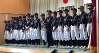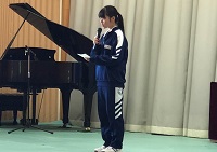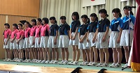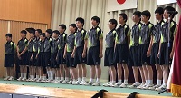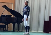 また、3年生の長久保さんから、「各部活動ごとに、放課後などたくさんの練習を積み重ねてきたことと思います。つらく、苦しい練習もあったことでしょう。しかし、それを乗り越えてきたことを自信に変えて、本番では精一杯力を発揮してください。一人一人が悔いの残らない大会になるよう願っています。チームの目標が達成できるよう頑張ってきてください。」と「激励の言葉」がありました。野球部主将大和田さんから、「田村支部大会を通して、プラス1を見つけられるように頑張ってきます。」と「お礼の言葉」がありました。また、吹奏楽部から応援の演奏もありました。すばらしい演奏をありがとう。「チーム小野」で田村支部大会を戦ってきます。