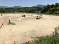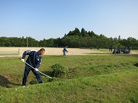 明日から田村支部中体連総合大会が始まりますが、いろいろな方に応援されています。ますは、小野町教育委員会で予算を取っていただき、先週の22日・23日の2日間、先﨑組さんに校庭の整地作業をしていただきました。でこぼこしていた校庭も整地されて、野球部・サッカー部・ソフトボール部とも大会前の練習に打ち込むことができました。ありがとうございました。