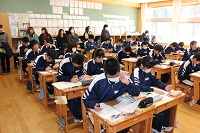 12月9日(土)は授業参観と学年懇談会があり、約半数の保護者の方に子どもたちの授業を見ていただきました。1年2組の保健体育は球技(キャッチボール)でしたが、保護者の方も一緒にキャッチボールをされていました。他に国語・社会・技術・理科を参観していただきました。2年生は総合学習、職場体験の発表でした。お子様の様子はいかがだったでしょうか。授業参観後は各学年懇談会です。人数は少なくなりましたが、2学期や冬休みの学習や生活、進学・進路等について協議が行われました。平成29年も残り2週間、しっかりとこの1年を振り返りたいと思います。