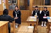 【生徒発表 左:1年 瀬谷さん 中:2年 二瓶さん 右:3年 齊藤さん】
