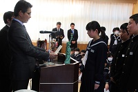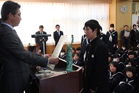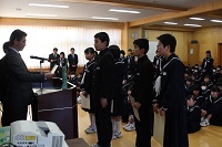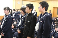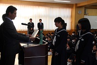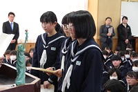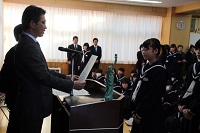 12月22日(金)の終業式の中では「2学期の反省」の題で、各年代表生徒の発表がありました。日々の学習や行事等で頑張ったことや課題についてと3学期に頑張りたいことが発表されました。