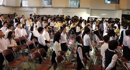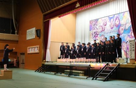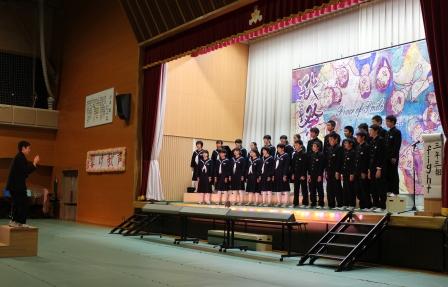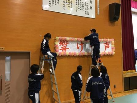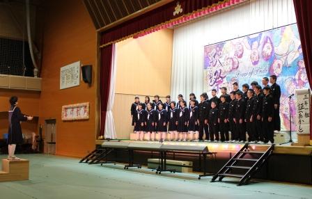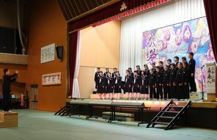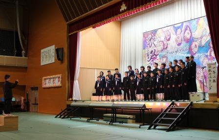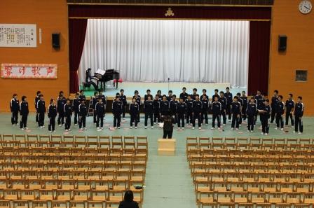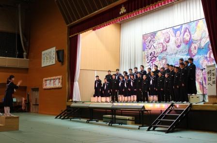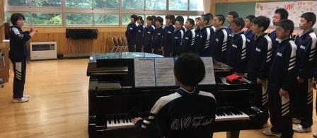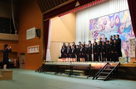 文化祭(秋篁祭)まであと2日となりました。朝も昼も各学級等から合唱コンクールに向けて、すてきな歌声が響いてきます。どの学級が小野町音楽祭に出場するのか、本番の「合唱コンクール」が楽しみです。子ども達の歌声をどうぞお聴きください。 当日の日程については昨日発行の「学校だより17号」でもお知らせしましたのでご確認ください。また、本日配布のプリントには、22日の駐車場について等、大切な内容が書かれてありますので、ご家庭でご確認ください。週末から週明けは、台風21号や前線の影響で荒天となる恐れがあり、気温も最高が14度と低い予報ですので、温かい服装でお越しください。 【駐車場】:校舎前の駐車場が満車の場合、例年は校庭に乗り入れていましたが、今年度は乗り入れ禁止とします。「旧宍戸会館跡地(ふれあいの坂側校門の向かい)」をお借りしましたの、そちらに駐車するようお願いいたします。 【写真 10月20日(金)昼休みの練習風景 左:3年2組 右:1年3組】 ※ 10月22日(日)の日程:第17号:文化祭(日程).pdf