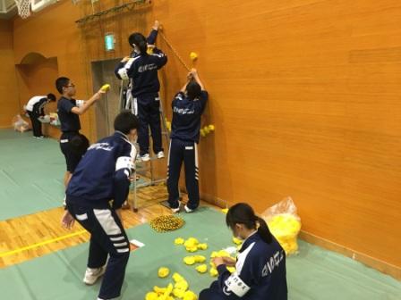 明日10月21日(土)は土曜授業日です。通常の登校で、授業(月1と月 5)と文化祭の準備になります。給食はありませんので、お弁当の準備をお願いいたします。15時30分には準備・片付けを終了し、15時30分から合唱練習・帰りの学活となり、一部の生徒は16時下校となります。16時から、特設合唱部と吹奏楽部のリハーサル、実行委員会活動、部活動(1・2年)、最終確認し、17時には完全下校となります。スクールバスは16時10分です。 また、PTA模擬店の前日準備です。本部役員と第1・2学年役員の皆さんは、9時から活動開始です。調理室前にご集合ください。包丁を持参するようお願いいたします。