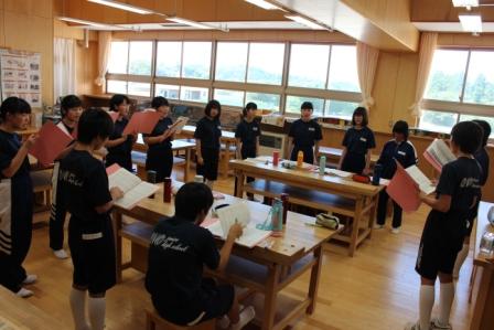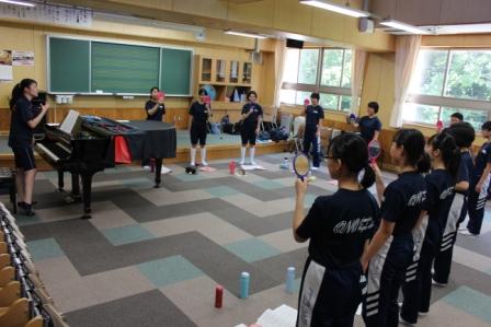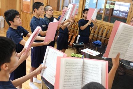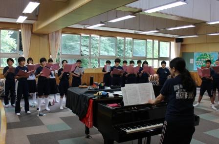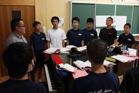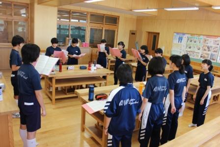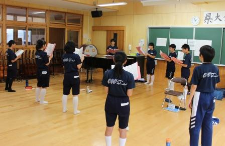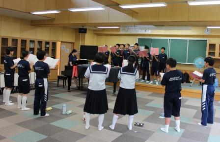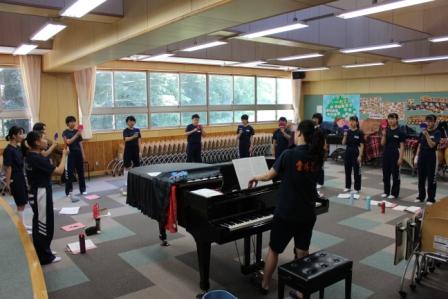 先日、運動部の県大会は終了しましたが、子ども達は特設合唱部にも入部しており、8月23日に行われる、「田村地区中学校音楽祭」に向けて頑張っています。今年は、町音楽外部講師として、菊池先生が夏休みの期間、4時間合唱(吹奏楽)の指導に来てくださっています。昨日の練習の様子です。県大会出場を目指して頑張ってほしいですね。