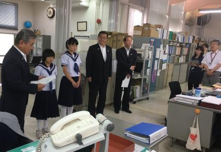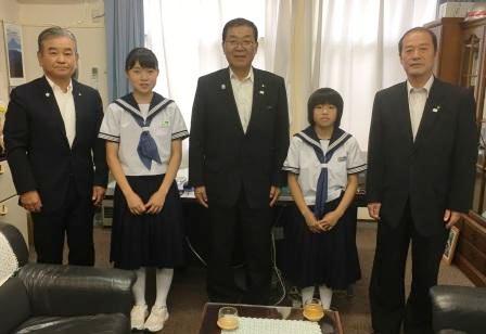 7月31日(月)午後1時、小野町役場町長室において、福島県中体連大会で活躍し、東北中体連大会に出場する2名の生徒を、町長と副町長、教育長の前で報告しました。大和田町長から激励の言葉を頂きました。小野中の代表として、小野町の代表として、福島県の代表として頑張ってきます。