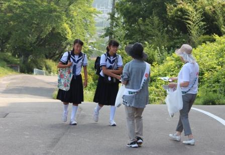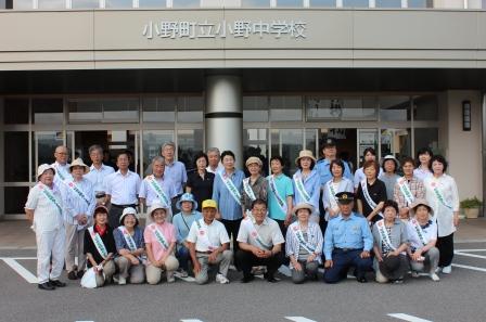 7月14日(金)朝7時から、小野町更正保護女性会の方々によるあいさつ運動が、小野中学校昇降口前とふれあい坂体育館前で行われました。大和田町長、西牧教育長、服部小野分庁舎所長、保護女性会の方々30名によるもので、子ども達は元気に挨拶をしていました。本校では、生徒会執行部と生活委員によるあいさつ運動を実施しています。本校の伝統である「元気なあいさつ」を意識し、生徒が自ら行っている活動です。これからも「元気なあいさつ」を大切にし、「あいさつ日本一」を目指します。