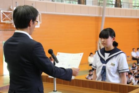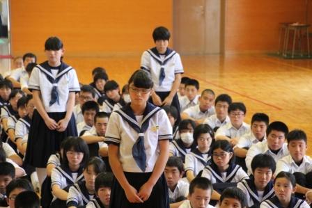 7月20日(木)の終業式の中では「1学期の反省と夏休みの抱負」の題で、各学年代表生徒の発表がありました。日々の学習や行事等で頑張ったことや課題についてと夏休みに頑張りたいことが発表されました。