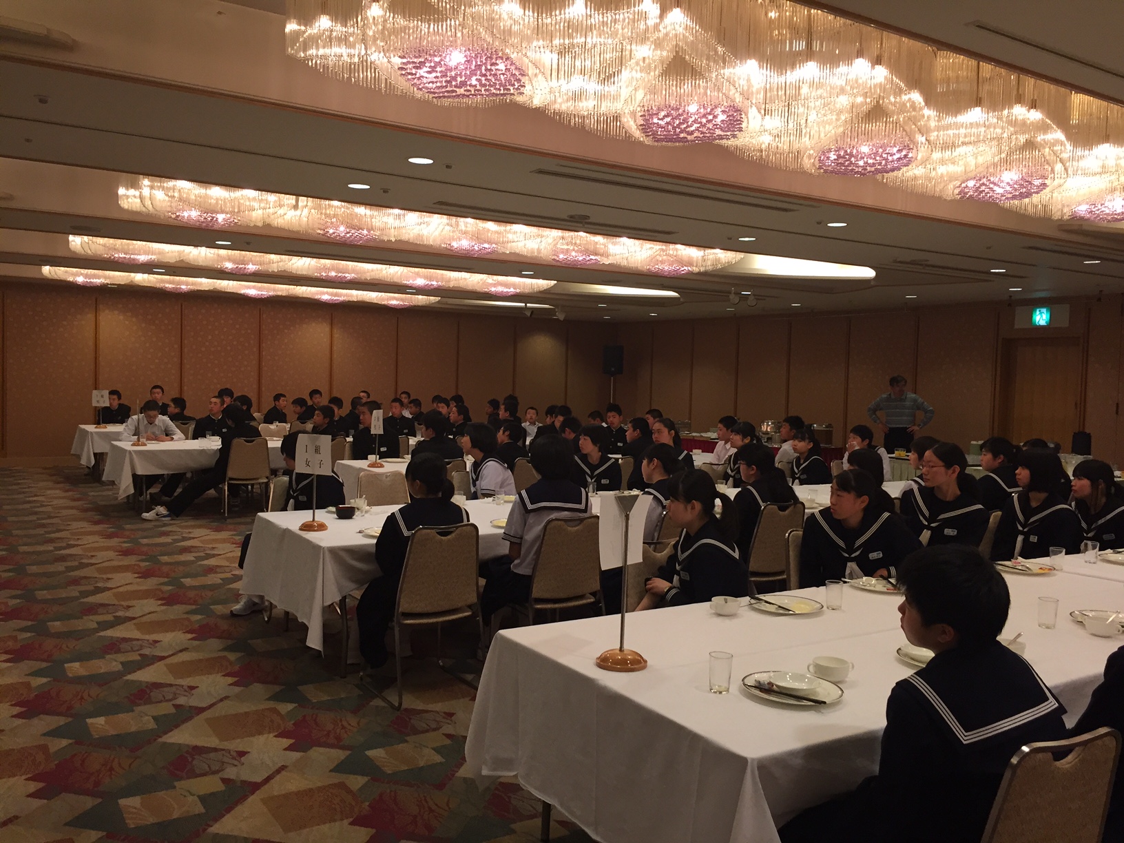 若干眠たそうな表情ながら、6時50分からの朝食を全員そろっていただきました。 この後、8時45分に大阪城公園に向かいます。 本日は曇り空。帰路に着くまで雨が降らないことを祈ります。IMG_0514.JPG