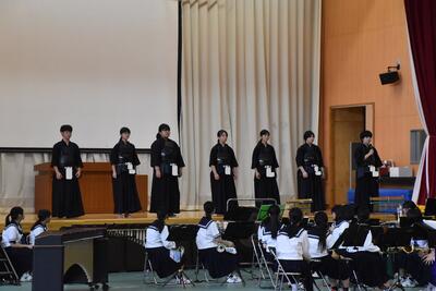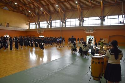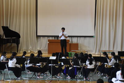 また、吹奏楽部は、部長の決意表明後に、コンクールで発表する曲を披露しました。