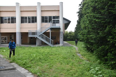5月末に第1回を実施して約1ヶ月。きれいさっぱりしていた校地内も、至るところで草木がうっそうと生い茂ってきていました。
