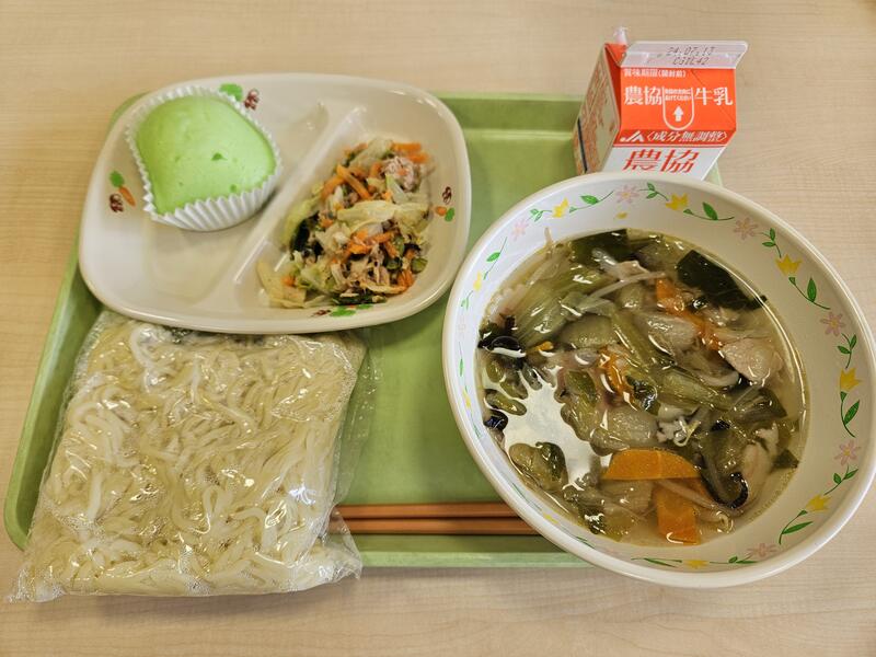 本日の給食には、初登場となる「手作りメロン蒸しパン」が出ました。