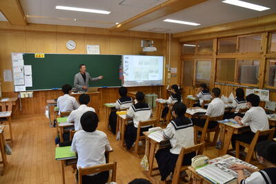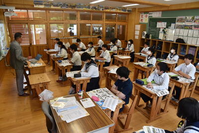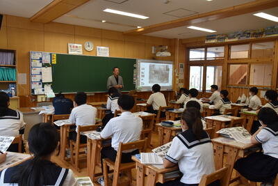 本日7月2日(火)、3年生では、地域の方を特別非常勤講師としてお招きし、小野町の歴史について学習しました。