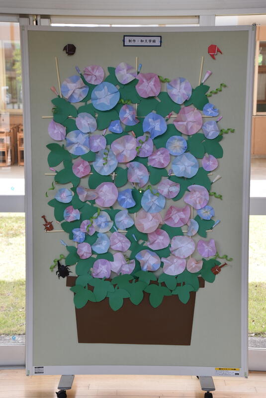 紹介が遅れましたが、これらの作品は、和久学級の生徒の皆さんが作成したもので、昇降口がいつも華やかに飾れています。
