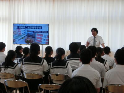 高校の先生から直接話を聞くことを通して、各高校の特徴と各学校の募集内容について把握するとともに、主体的に進路実現を行うための意欲を高めることを目的として実施しました。