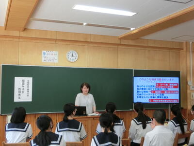 先日の3年生に続き、同じ助産師の先生を講師としてお招きし、性教育について講話をいただきました。