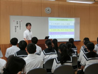 本日の高等学校説明会を通して、進路実現に向けて生徒たちの意欲は高まったことと思います。来週の教育相談では、進路実現に向けてよりよい話し合いができることと期待しております。
