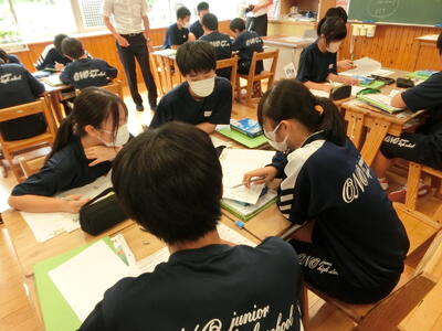 さらに活動が始まってからも、辞書を使って日本語を英語に翻訳しようと考えたり、友だちが悩んでいる英語表現を一緒になって考えたり、困っている友だちにアドバイスしたり、子ども同士で学び合う姿がたくさん見られました。