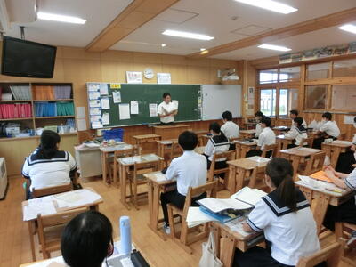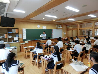 本日7月9日(火)の3時間目に、2年2組において、英語科の研究授業が行われました。