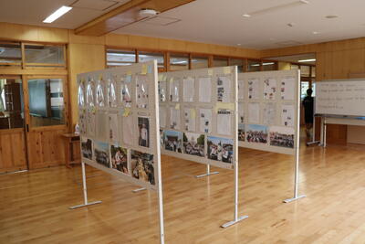 授業の様子や、子どもたちの新聞や作品等も展示してありますので、ぜひお越しください。