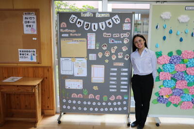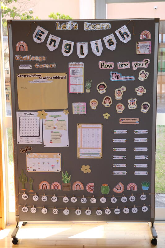 4月より本校に勤務しているALTの先生が、子どもたちに少しでも親しんでもらうと1人で作成したものです。