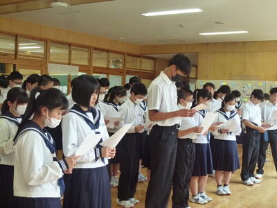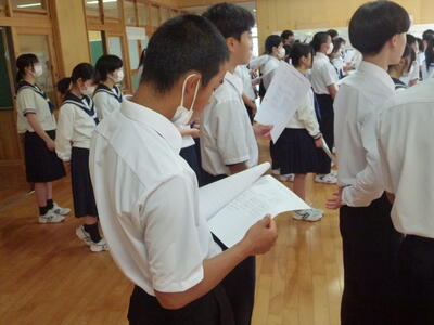 本日6月13日(木)の朝の学習の時間に、3学年ホールにおいて、3年生で「高校説明会」の事前指導が行われまいた。