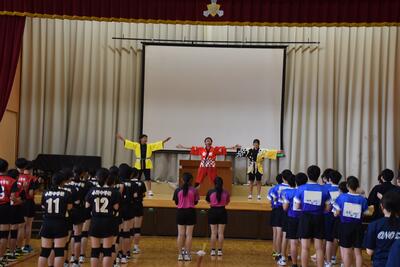 途中、クラブチームに所属している3年生と3年生の学級担任によるサプライズ応援があり、大盛況に!