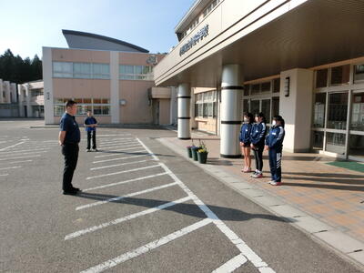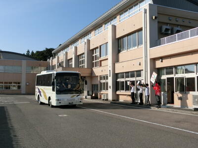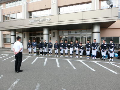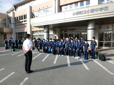 町内以外の会場で試合を行う部活動が、7時前に無事学校を出発しました。