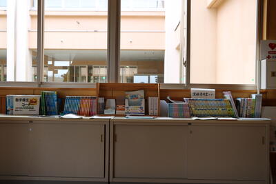 生徒昇降口前には、各種検定試験の問題集の貸し出しコーナーも設置されています。