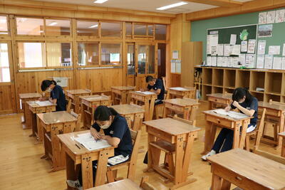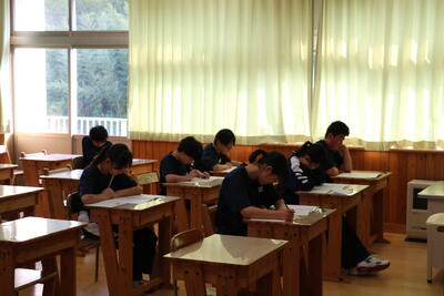 本校では、漢字検定、数学検定、英語検定の3つの検定試験について、町教育委員会の支援を受け、無償で全校生が受検予定です。予定は以下のとおりです。