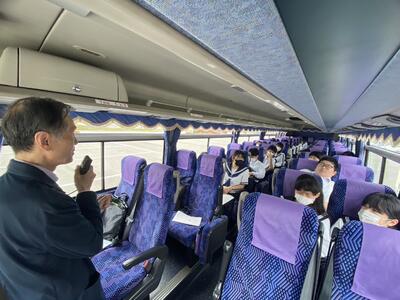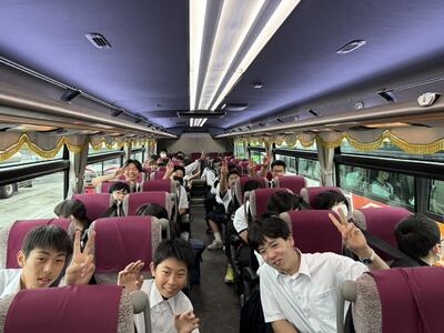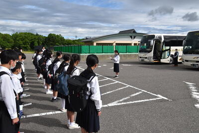 本日は1学年75名全員が参加することができ、2年生同様に元気にいっぱいでバスに乗り込みました。