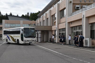 1年と3年の先生方に見送られ、予定どおりに学校を出発しました。