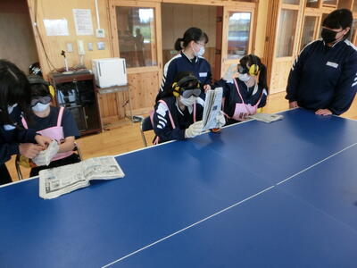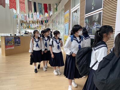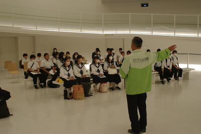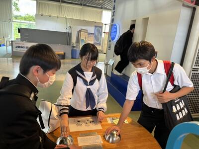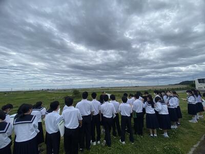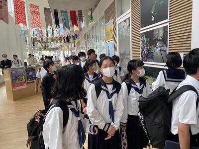 1年生は、東日本大震災当時まだ生まれておらず、初めて震災を間近に感じた生徒も多く、みんな真剣な表情で展示を見たり、説明を聞きいたりしていました。