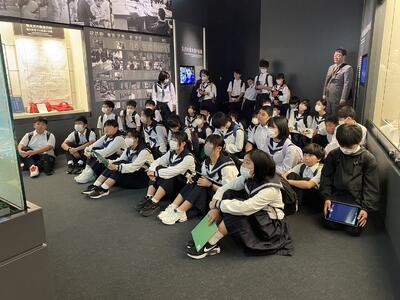 1年生は、最初の目的地である双葉町の「東日本大震災・原子力災害伝承館」に予定どおりに無事に到着しました。