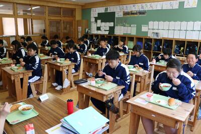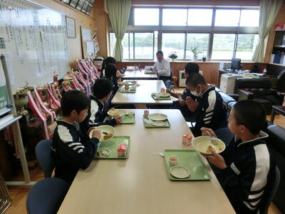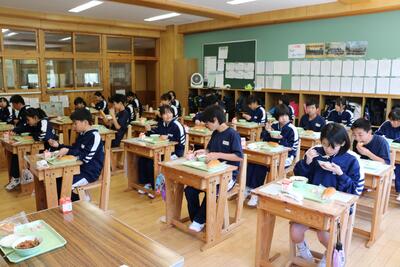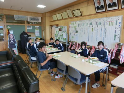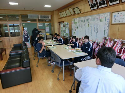 5月23日(木)の前期生徒会総会を前に、先日行われた議案書審議で出された意見や要望、ルールメイキング、また新たな取組等について、美味しい給食を食べながら話をしました。
