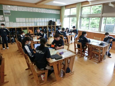 1年生では、5月21日(火)の6時間目に、学習旅行を前に「アクアマリンふくしま」について事前学習を行いました。