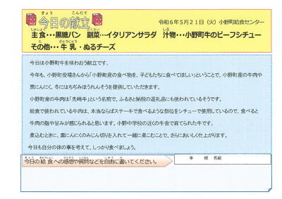 今回給食で使われた牛肉は、小野町のふるさと納税の返礼品としても使われているお肉で、ステーキでも食べられる部位だそうです。
