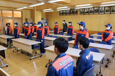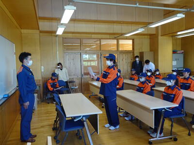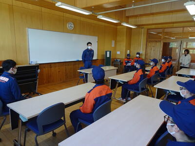 本日5月21日(火)のお昼休みに、本校会議室において、「小野中学校消防クラブ結団式」が行われました。
