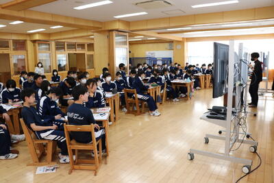 3年生では、5月21日(火)の5・6時間目の総合的な学習の時間に、JICA二本松青年海外協力隊訓練所のスタッフの方にお越しいただき、「世界の現状を知り、自分の生き方をみつめる」をテーマに学習を行いました。