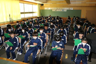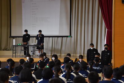 また、校長からも「物事を決めること、討論し、集団の意志を形にしていくことの大切さを感じ、今年度だけでなくこれからの小野中学校について考える機会としてほしい」という話がありました。