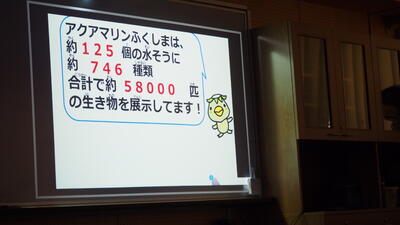 説明の中には、「クリオネは何の仲間か」などのクイズもあり、子どもたちも楽しみながら、「アクアマリンふくしま」について知ることができました。