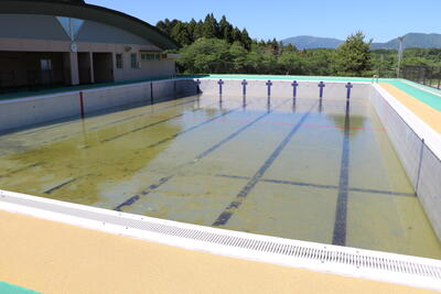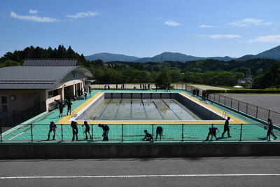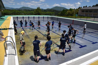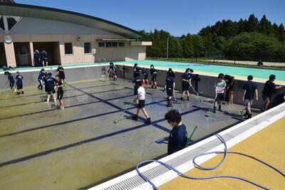 清掃後、時間をかけてプールに水を入れ、6月中旬から保健体育科でプールの授業が始まります。