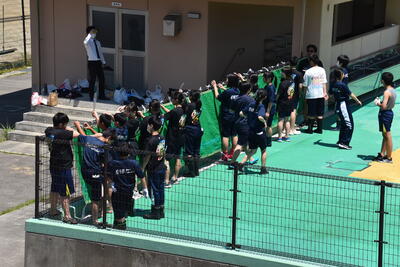 決して楽な仕事ではありませんが、子どもたちは大はしゃぎしながら、一生懸命に清掃に取り組んでいました。