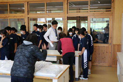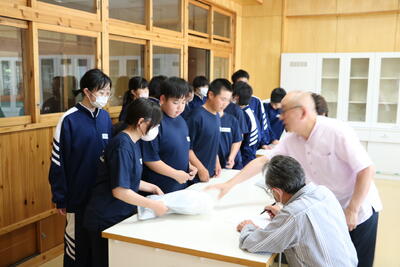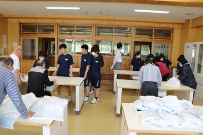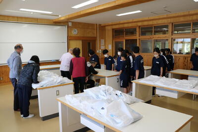 1年生も、本日お昼休みに、町の衣料組合の方々がいらっしゃって、夏服の受け渡しが行われました。